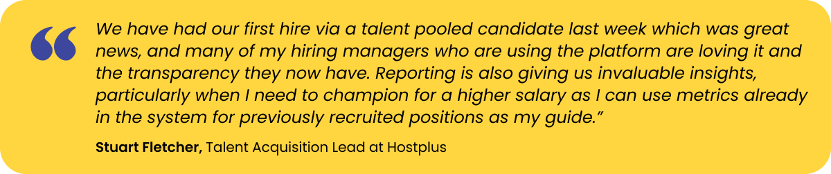 The system also lacked the ability to provide data insights which prevented Hostplus from having basic visibility over essential market data, such as salary expectations. Hiring managers were not able to use the system and it couldn’t be integrated into the rest of their HR tech stack.