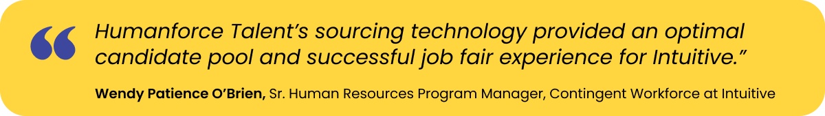 Intuitive, a pioneer of robotic-assisted surgery, engaged with Geometric Results Inc (GRI) to implement a Managed Direct Sourcing (MDS) program to help achieve their contingent workforce goals. GRI brought in Raise Recruiting for the sourcing and curation of candidates with Humanforce Talent’s direct sourcing technology.